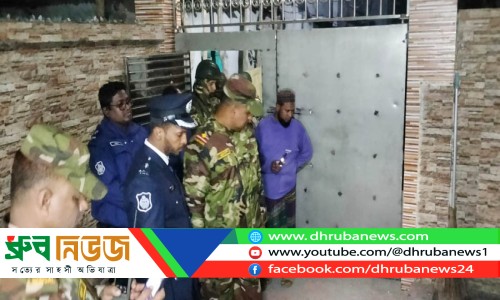 মোহাম্মদ আলীর বাসভবন পরিদর্শন করে সেনাবাহিনী ও পুলিশের একটি দল ছবি: ধ্রুব নিউজ