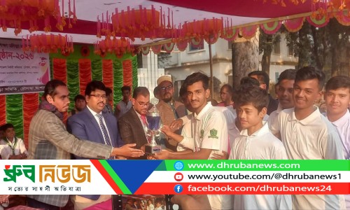 ❒ প্রধান অতিথি হিসেবে উপস্থিত থেকে বিজয়ীদের হাতে পুরস্কার তুলে দেন চৌগাছা উপজেলা নির্বাহী অফিসার (ইউএনও) তানভীর আহমদ। ছবি: ধ্রুব নিউজ