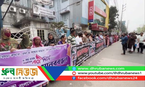 সারাদেশে অব্যাহত ধর্ষণ-হত্যা ও নিপীড়নের প্রতিবাদে যশোরে “জনউদ্যোগ” যশোর ও “বাংলাদেশ মহিলা পরিষদ’র” মানববন্ধন । ছবি: ধ্রুব নিউজ