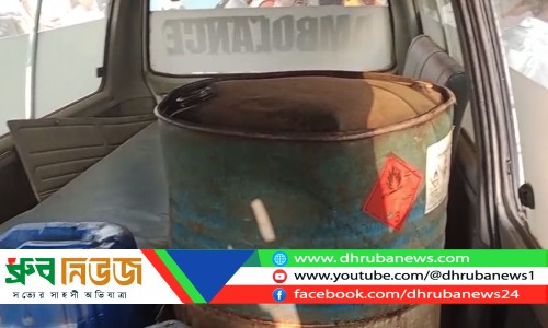 অ্যাম্বুলেন্সের মধ্যে ড্রাম ও ব্যারেল অকটেন নেয়ার চেষ্টা ছবি: ধ্রুব নিউজ