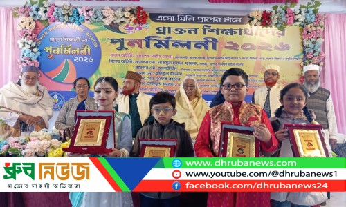 ❒ সংবর্ধিত চার ক্ষুদে শিক্ষার্থী ছবি: ধ্রুব নিউজ