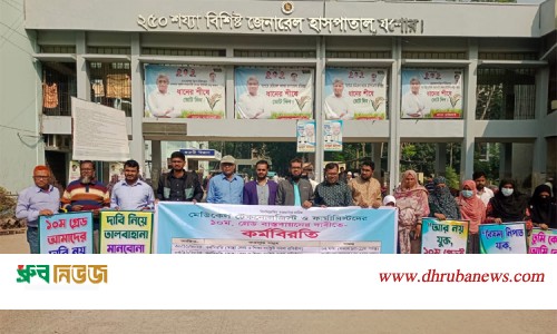 ❒ আজ দ্বিতীয় দিনেও যশোরে মেডিকেল টেকনোলজিস্ট ও ফার্মাসিস্টদের কর্মবিরতি পালন। ছবি: ধ্রুব নিউজ