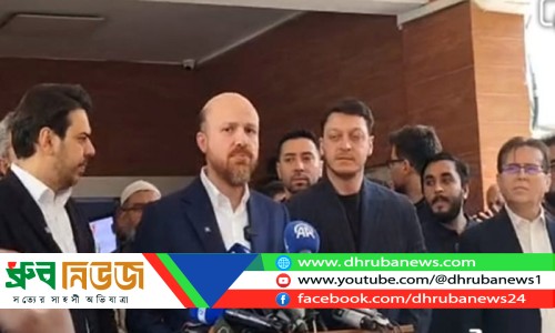 গণমাধ্যমের সাথে কথা বলছেন বিলাল এরদোগান। ছবি: ইউএনবি