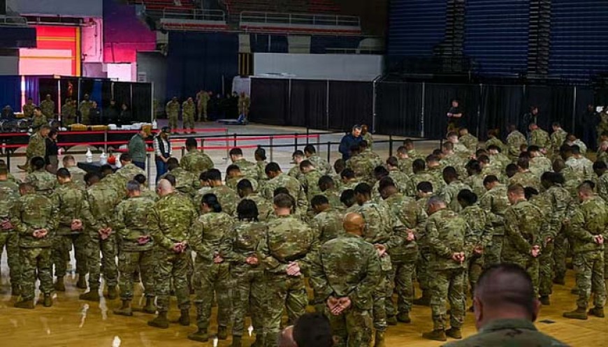 ওয়াশিংটন ডিসিতে ২০২৫ সালের ২৮ নভেম্বর ন্যাশনাল গার্ড সদস্যদের সঙ্গে প্রার্থনায় অংশ নেন হেগসেথছবি: মার্কিন বাহিনীর সৌজন্যে