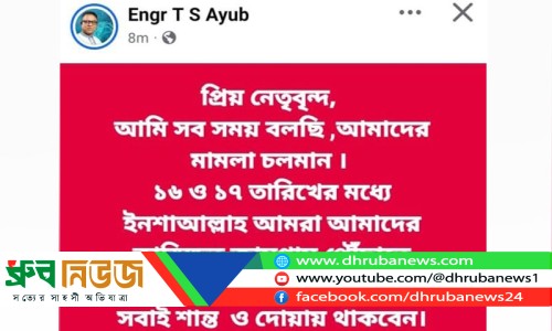 যশোর-৪ আসনে টিএস আইয়ুবের প্রার্থিতা ফিরে না পাওয়ায় বাঘারপাড়া ও অভয়নগর এলাকার তৃণমূল কর্মীদের মধ্যে চরম হতাশা দেখা দিয়েছে। তবে আশাহত না হয়ে নেতাকর্মীদের শান্ত থাকার আহ্বান জানিয়েছেন আইয়ুব। নিজের ব্যক্তিগত ফেসবুক অ্যাকাউন্টে এক পোস্টে বলেন, প্রিয় নেতৃবৃন্দ, আমি সব সময় বলছি আমাদের মামলা চলমান। ১৬ ও ১৭ তারিখের মধ্যে আমরা আমাদের কাঙ্ক্ষিত জায়গায় পৌঁছাতে পারবো। সবাই শান্ত ও দোয়ায় থাকবেন।