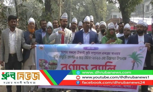 গুঁড় ও কৃষি মেলা উপলক্ষে মঙ্গলবার বেলা ১১টায় চৌগাছা উপজেলা পরিষদ চত্বর থেকে বর্ণাঢ্য র্যালি বের হয়। ছবি: ধ্রুব নিউজ