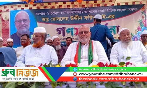 নবনির্বাচিত সংসদ সদস্য ডা. মোসলেহ উদ্দিন ফরিদকে গণসংবর্ধনা প্রদান করা হয় ছবি: ধ্রুব নিউজ