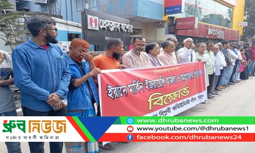 ইরানে ইসরাইল ও আমেরিকার আগ্রাসনের প্রতিবাদে আজ প্রেসক্লাব যশোরের সামনে বিক্ষোভ সমাবেশ করেছে বাংলাদেশ বিপ্লবী কমিউনিস্ট লীগ যশোর জেলা শাখা। ছবি: ধ্রুব নিউজ