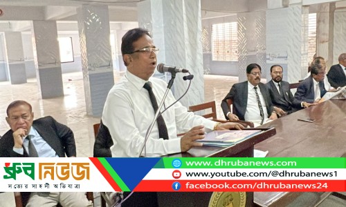বুধবার দুপুরে জেলা আইনজীবী সমিতির এক জরুরি সভা অনুষ্ঠিত হয় ছবি: ধ্রুব নিউজ