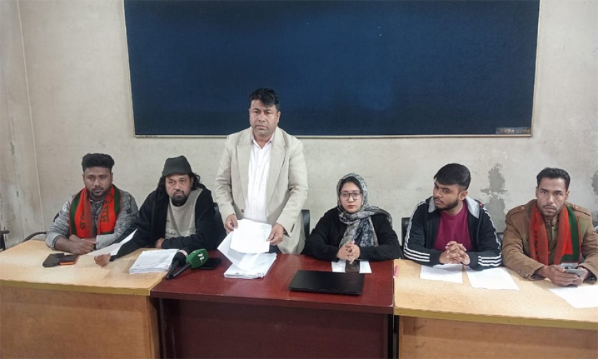 ❒ গণঅধিকার পরিষদ মনোনীত যশোর-৬ (কেশবপুর) আসনের প্রার্থী জেসিনা মুর্শীদ লিখিত বক্তব্য পাঠ করছেন। ছবি: ধ্রুব নিউজ