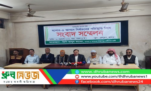 যশোর-৩ (সদর) সংসদীয় আসনে নির্বাচন পরিস্হিতি নিয়ে দাঁড়িপাল্লা প্রতীকের প্রার্থী ভিপি আব্দুল কাদের সংবাদ সম্মেলন । ছবি: ধ্রুব নিউজ
