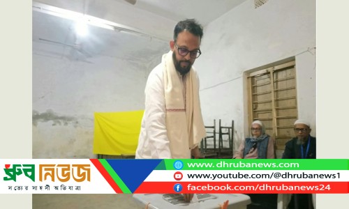 আলহাজ্ব নুরুজ্জামান লিটন তাঁর ভোটাধিকার প্রয়োগ করেছেন ছবি: ধ্রুব নিউজ