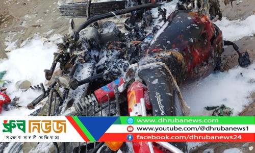 আগুন নেভানোর পর মোটরসাইকেলটি ছবি: ধ্রুব নিউজ