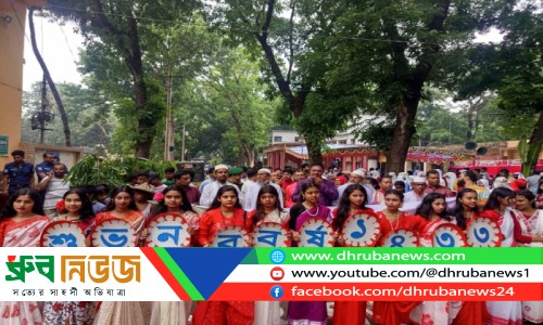 চৌগাছায় বর্ণাঢ্য বৈশাখ শোভাযাত্রা। ছবি: ধ্রুব নিউজ