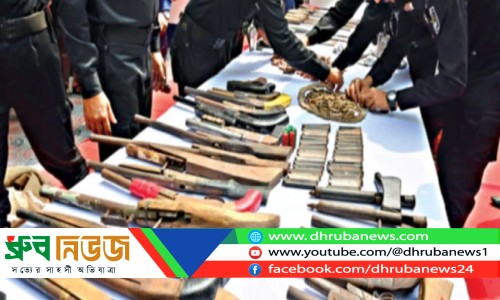সীতাকুণ্ডের জঙ্গল সলিমপুরে অভিযানে উদ্ধারকৃত দেশি-বিদেশি বিপুল পরিমাণ অস্ত্র ও গুলি ছবি: সংগৃহীত