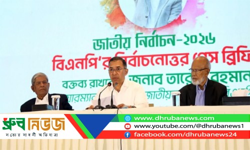 হোটেল ইন্টারকন্টিনেন্টালে সংবাদ সম্মেলনে বিএনপি চেয়ারম্যান তারেক রহমান। ছবি: ধ্রুব নিউজ