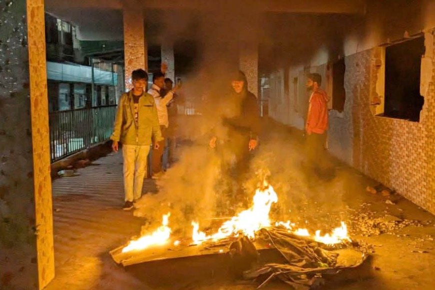 রাতে একদল যুবক পরিত্যক্ত আওয়ামী লীগ কার্যালয়ে ঢুকে আগুন লাগিয়ে দেয় সংগৃহীত