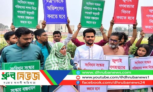 মানববন্ধনে অংশ নেওয়া ব্যক্তিদের হাতে ছিল প্ল্যাকার্ড। এসব প্ল্যাকার্ডে লেখা ছিল—‘সংবিধান সংস্কার পরিষদের শপথ নিয়ে গণভোট অনুযায়ী সংস্কার বাস্তবায়ন করতে হবে’ ‘জুলাই গণহত্যার বিচার করতে হবে’ ‘রাষ্ট্রপতিকে অভিশংসন করতে হবে’ ‘জুলাই জাতীয় সনদ বাস্তবায়ন চাই’ ‘জুলাই নিয়ে টালবাহানা চলবে না’ প্রভৃতি।