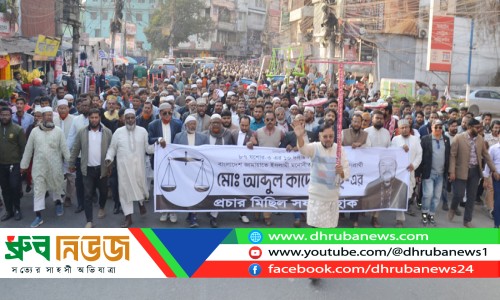 দাড়িপাল্লা প্রতীক হাতে মিছিলে অংশ নেন জামায়াতে ইসলামীর প্রার্থী আব্দুল কাদের ছবি: ধ্রুব নিউজ