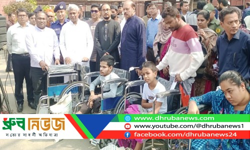 বিশেষ চাহিদা সম্পন্ন ব্যক্তিদের মাঝে উন্নত মানের হুইলচেয়ার ও শুকনো খাদ্যসামগ্রী বিতরণ করেন প্রতিমন্ত্রী অনিন্দ্য ইসলাম অমিত ছবি: ধ্রুব নিউজ