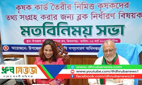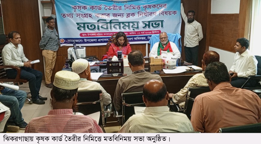 বর্তমান সরকারের নতুন ১৮০ দিনের বিশেষ কর্মপরিকল্পনার আওতায় সারা দেশের মাত্র ৯টি উপজেলার একটি হিসেবে যশোরের ঝিকরগাছায় শুরু হয়েছে ‘কৃষি স্মার্ট কার্ড’ তৈরির কাজ। এই প্রকল্পের তথ্য সংগ্রহ ও ব্লক নির্ধারণের লক্ষ্যে সোমবার সকালে ঝিকরগাছা উপজেলা নির্বাহী অফিসারের কার্যালয়ে এক বিশেষ মতবিনিময় সভা অনুষ্ঠিত হয়।