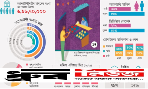 বাংলাদেশে নারী ও পুরুষের অ্যাকাউন্ট থাকার পার্থক্য কিছুটা বেড়েছে। ২০২৪ সালে ‘জেন্ডার গ্যাপ’ দাঁড়িয়েছে ২১ শতাংশীয় পয়েন্ট। ২০২১ সালে যা ছিল ১৯ শতাংশীয় পয়েন্ট। ২০২৪ সালে নারীদের মধ্যে অ্যাকাউন্ট খোলার হার ৩৩ শতাংশ এবং পুরুষের ৫৪ শতাংশ। ২০২১ সালে যা ছিল যথাক্রমে ৪৪ শতাংশ এবং ৬৩ শতাংশ। ডিজিটাল পেমেন্টের ক্ষেত্রে নারীর হার ২৭ শতাংশ। অন্যদিকে পুরুষের হার ৪৫ শতাংশ।