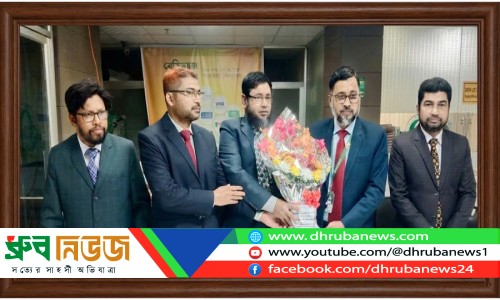 ইসলামী ব্যাংক বাংলাদেশ পিএলসি’র নতুন শাখা প্রধান সিনিয়র অ্যাসিস্ট্যান্ট ভাইস প্রেসিডেন্ট মো. জামিনুর রহমানকে ফুলেল শুভেচ্ছা জানাচ্ছেন, অ্যাসিস্ট্যান্ট ভাইস প্রেসিডেন্ট ও ম্যানেজার অপারেশন্স মো. সফিউর রহমান, ফার্স্ট অ্যাসিস্ট্যান্ট ভাইস প্রেসিডেন্ট শাহনুর আলম, বজলুর রহমান, নাহিদ আলী খন্দকার । ছবি: ধ্রুব নিউজ