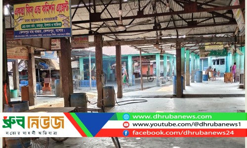 কেশবপুর পাইকারি মাছ বাজারে দুই শ্রমিককে মারপিটের ঘটনার সুষ্ঠু বিচার ও দোষীদের গ্রেপ্তারের দাবিতে অনির্দিষ্টকালের জন্য বেচাকেনা বন্ধ ঘোষণা করেছে মৎস্য আড়ত মালিক সমিতি ছবি: ধ্রুব নিউজ
