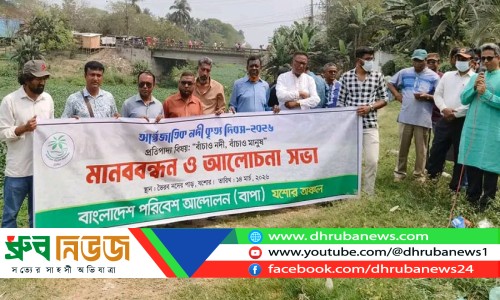 নদী দখল, দূষণ ও অব্যবস্থাপনার কারণে দেশের নদীগুলো হুমকির মুখে—এই বাস্তবতাকে সামনে রেখে আন্তর্জাতিক নদীকৃত্য দিবস উপলক্ষে যশোরে মানববন্ধন কর্মসূচি পালিত হয়েছে। শনিবার (১৪ মার্চ) সকালে শহরের ভৈরব নদের তীরে বাংলাদেশ পরিবেশ আন্দোলন (বাপা) যশোর জেলা কমিটির উদ্যোগে এই কর্মসূচি পালন করা হয়।