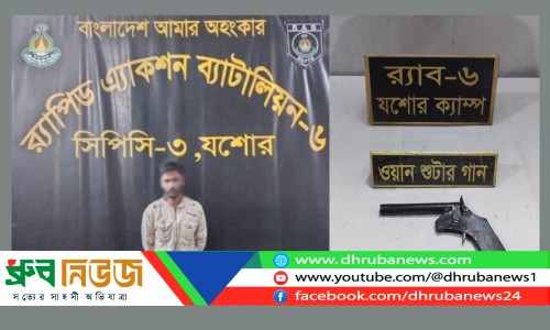 যশোরে সন্ত্রাসী তৎপরতার বিরুদ্ধে বড় সাফল্য পেয়েছে র্যাপিড অ্যাকশন ব্যাটালিয়ন (র্যাব-৬)। বুধবার রাতে যশোর সদর উপজেলার মধুগ্রাম এলাকায় এক ঝটিকা অভিযান চালিয়ে একটি অবৈধ ওয়ান শ্যুটারগানসহ কুখ্যাত অস্ত্রধারী সন্ত্রাসী মারুফ হোসেনকে (২৭) গ্রেপ্তার করা হয়েছে। গ্রেপ্তারকৃত মারুফ হোসেন সদর উপজেলার মধুগ্রামের হারুন অর রশিদের ছেলে।