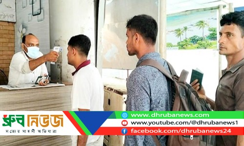 যাত্রীদের হ্যান্ড থার্মাল স্ক্যানারের মাধ্যমে শরীরের তাপমাত্রা পরীক্ষা করা হচ্ছে। ছবি: ধ্রুব নিউজ