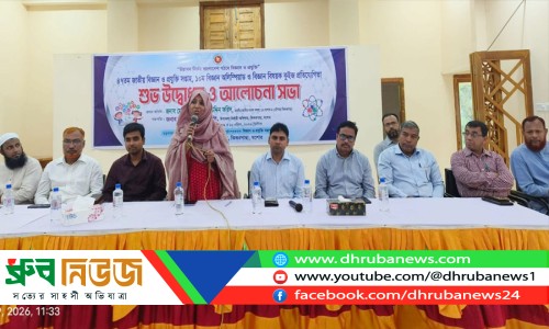 ঝিকরগাছা উপজেলা পরিষদ মিলনায়তনে ৪৭তম জাতীয় বিজ্ঞান ও প্রযুক্তি সপ্তাহ উপলক্ষে আয়োজিত বিজ্ঞান অলিম্পিয়াড ও কুইজ প্রতিযোগিতা অনুষ্ঠিত হয়। ছবি: ধ্রুব নিউজ
