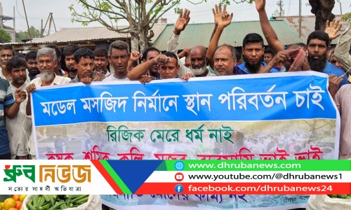 বাজারের স্থলে মডেল মসজিদ স্থাপনের বিপক্ষে ব্যবসায়িরা ছবি: ধ্রুব নিউজ