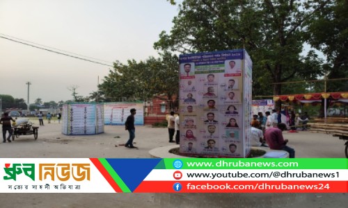 ঐতিহ্যবাহী যশোর ইনস্টিটিউট নির্বাচন কাল। এ উপলক্ষে দু’প্যানেলের পোস্টারে সেজেছে পাবলিক মাঠ। ছবি: ধ্রুব নিউজ