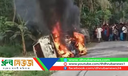 মাইক্রোবাসে ভয়াবহ অগ্নিকাণ্ডের ঘটনা ঘটে সোমবার বিকেলে ছবি: ধ্রুব নিউজ