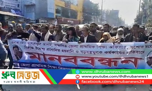 ঘুষ গ্রহণের অভিযোগে দুর্নীতি দমন কমিশনের (দুদক) হাতে আটক যশোর জেলা প্রাথমিক শিক্ষা কর্মকর্তা মো. আশরাফুল আলমের নিঃশর্ত মুক্তির দাবিতে ফুঁসে উঠেছে জেলার প্রাথমিক শিক্ষা পরিবার। এই আটককে ‘গভীর ষড়যন্ত্র’ দাবি করে রবিবার (১২ জানুয়ারি) দুপুরে যশোরে বিশাল বিক্ষোভ মিছিল ও মানববন্ধন করেছেন প্রাথমিক বিদ্যালয়ের শিক্ষক এবং সংশ্লিষ্ট দপ্তরের কর্মকর্তা-কর্মচারীরা।