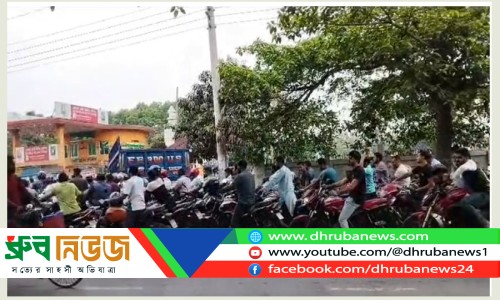 পাম্প থেকে তেল নিতে দীর্ঘ লাইন ছবি: ধ্রুব নিউজ
