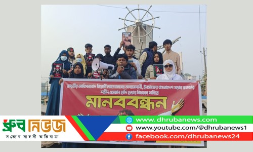 ইনকিলাব মঞ্চের মুখপাত্র শহীদ শরীফ ওসমান হাদি হত্যার বিচারের দাবিতে যশোরে মানববন্ধন হয়েছে। শনিবার ( ৩ জানুয়ারি) বিকেলে শহরের দড়াটানা ভৈরব চত্বরে বিপ্লবী ছাত্রজনতার ব্যানারে মানববন্ধন কর্মসূচি পালিত হয়।