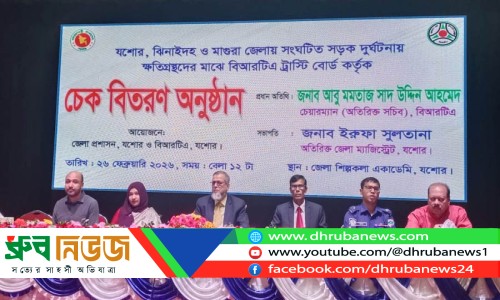 যশোর, ঝিনাইদহ ও মাগুরা জেলায় সড়ক দুর্ঘটনায় নিহত ও গুরুতর আহত ব্যক্তিদের পরিবারের সদস্যদের মাঝে আর্থিক সহায়তার চেক বিতরণ করা হচ্ছে। আজ বৃহস্পতিবার বেলা ১২টায় জেলা শিল্পকলা একাডেমি মিলনায়তনে বিআরটিএ ট্রাস্ট বোর্ডের উদ্যোগে এই চেক বিতরণ অনুষ্ঠান শুরু হয়।
