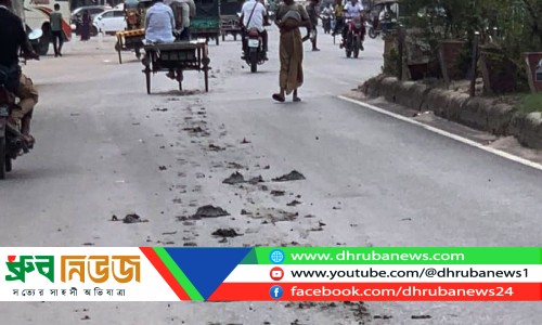 বেনাপোল বাজারেই পিচের সড়কের ওপর মাটির আস্তারণ ছবি: ধ্রুব নিউজ