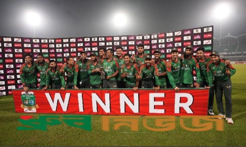 ❒ বাংলাদেশ দলের সিরিজ জয় উদযাপন। ছবি: বিসিবি